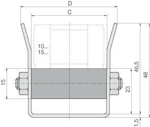 帶耐磨滑條的一片式導向槽橫截面 (請見選型表中的尺寸C和D)