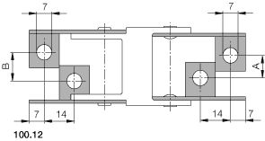 可提供內寬Bi: 25 - 125 mm 可提供彎曲半徑 R: 55 - 250 mm 節距:46 mm/鏈節 = 33 鏈節數/m