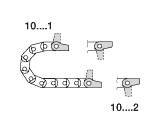 可提供內寬Bi: 25 - 125 mm 可提供彎曲半徑 R: 55 - 250 mm 節距:46 mm/鏈節 = 33 鏈節數/m