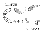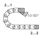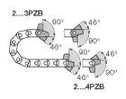 可提供內寬Bi: 25 - 125 mm 可提供彎曲半徑 R: 55 - 250 mm 節距 :46 mm/鏈節 = 22 鏈節數/m