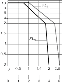 取決於附加負載時的架空長度 X軸:架空長度FLB/FLG(m) Y軸:附加負載(kg/m) FLB=安全塌腰架空長度 FLG = 直線架空長度