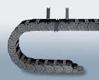 在此型號中,每隔 1.000 到 2.000 毫米的行程距離,在拖鏈鏈節的側面安裝特殊的塑膠滑腳。 這些滑腳類似於帆船上使用的擋板。 擋板與地面接觸時向上擺動,確保持續行駛。類似地,自滑行中的滑腳上下移動,調整其在拖鏈下層或上層的位置。 它們提供了精確的橫向引導並實現拖鏈的平穩滑行。