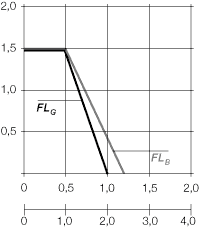 架空長度與填充重量 X 軸:架空長度(米)FLB/FLG Y 軸:填充重量(千克/米)刻度下段:行程 S(米)FLB = 帶准許凹陷的架空FLG = 上層平直的架空
