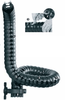 1.能夠實現多軸運動 - 高度的靈活性甚至在第六軸上 縱軸方向的扭轉可達 ± 10°/ 鏈節 這有助於導引電纜及管線實現複雜的運動軌跡