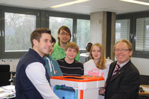 我們的“支援年輕工程師”計畫將一台3D印表機贈給本斯堡的Otto-Hahn-Gymnasium。 學校需要用印表機參加技術競賽。