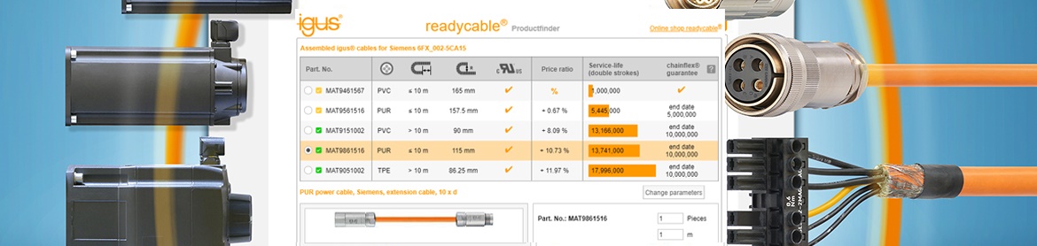 readycable® 預裝配電纜產品搜尋器:所有驅動電纜均可計算使用壽命