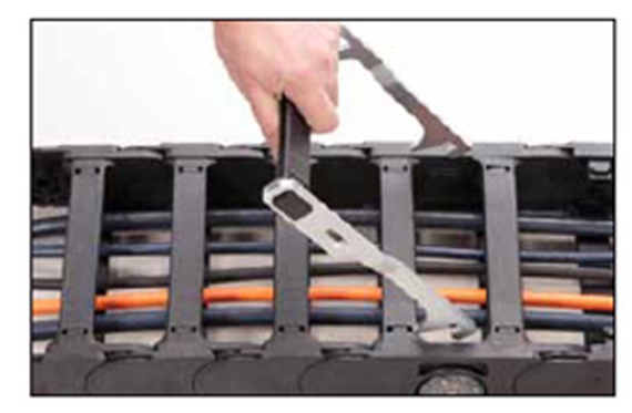 igus 工廠經驗證和測試的工具現已開始銷售,便於打開和關閉 igus® 拖鏈。 特別適用於 e. 拖鏈系列 E4.尤其適合有很多橫桿的拖鏈,安裝起來更方便。