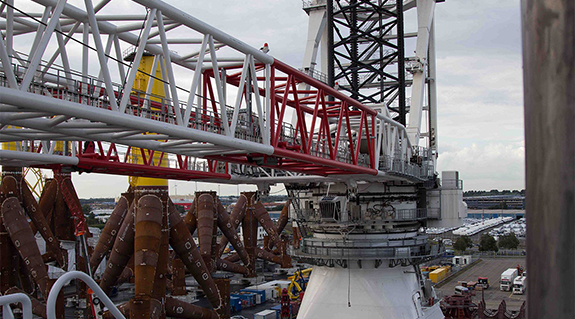 Long travels of 50 metres and more with igus® HD roller chains on sheerleg cranes.