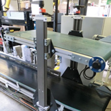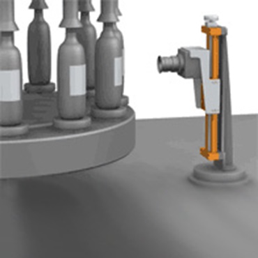 玻璃業傳送機上的位置調節應用,用於將瓶子分開。
