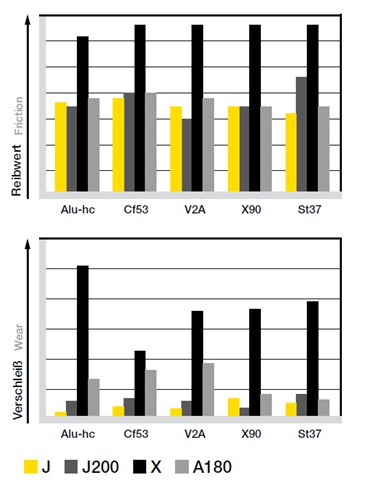 大量實驗室測試和多年實地經驗表明iglidur® J、J200、X和A180是適合大多數直線應用的理想材料,因為其具有卓越的磨損和摩擦特性。